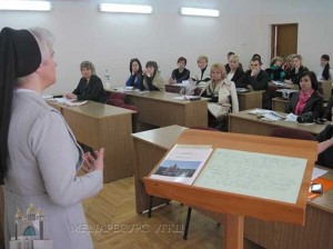 Просвітницький аспект у роботі з дітьми трудових мігрантів висвітлила голова Комісії УГКЦ у справах освіти та виховання с. Христофора Буштин. Вона звернула увагу на важливість передачі християнських цінностей при здійсненні психолого-педагогічного супроводу, адже людина «є цілістю гармонійного поєднання її духовно-душевних і тілесних сфер буття».