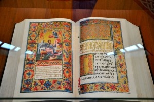 Головна книга експозиції – факсимільна копія Пересопницького Євангелія знаходиться в окремій вітрині посередині залу. Оригінал української Першокниги зберігається у столичній бібліотеці імені Вернадського. Пересопницьке Євангеліє було написане у 1561-ому році у місцевому монастирі й стало першим перекладом на староукраїнську мову.