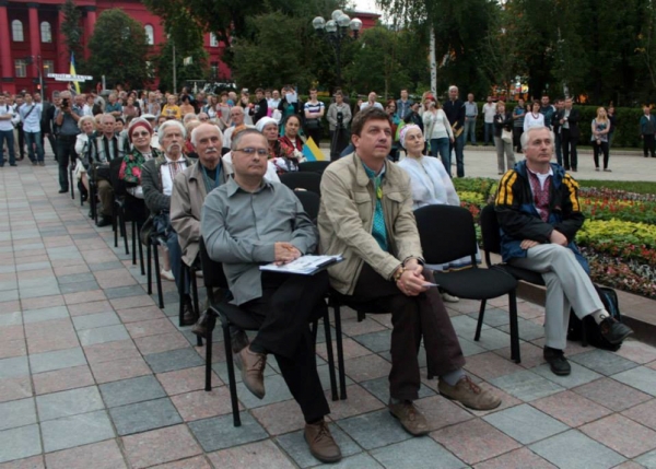 “Сьогодні якраз 39 років, як я вперше тут читав свої вірші. Ну, тоді нажаль не було мікрофонів, трошки менше було тут людей, але отам за кущами був аншлаг. І нас після наших читань так поважно везли на машинах. Ну, мене тричі везли на машинах, в сукупності це вийшло 12 років, але я щасливий тому, що я дожив до незалежності України і що я можу тут, не ховаючись, відверто для вас прочитати свій вірш.