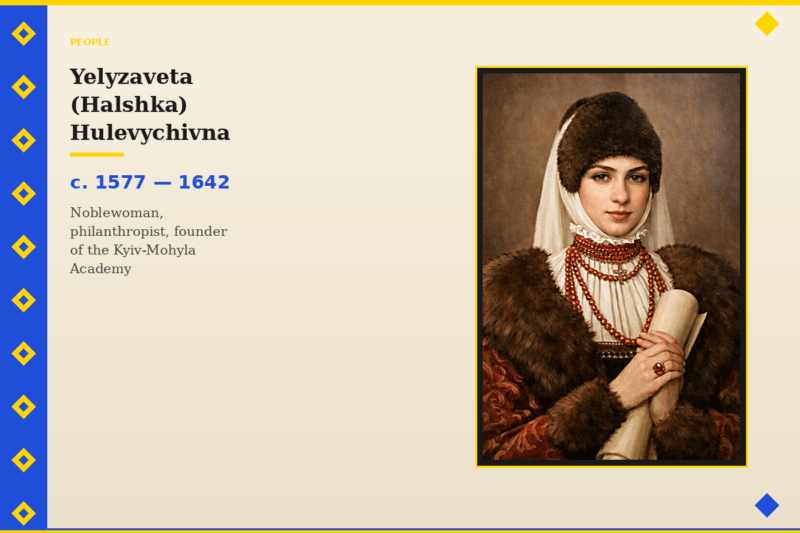 Yelyzaveta Hulevychivna was an ordinary Ukrainian noblewoman from a wealthy Volhynian family. Thanks to her grandfather, she received an excellent education and developed a useful habit of supporting brotherhood schools for future generations. At the age of 19, she became the wife of Khrystofor Potii — the son of Metropolitan Ipatii Potii of the Ukrainian Greek Catholic Church. The story of this marriage was almost Shakespearean: two feuding families (defenders of Orthodoxy and Catholicism), children in love, a marriage against parental opposition, an escape from home, and the birth of a beloved daughter. But the newlyweds did not enjoy family happiness for long — her husband died a few years later.