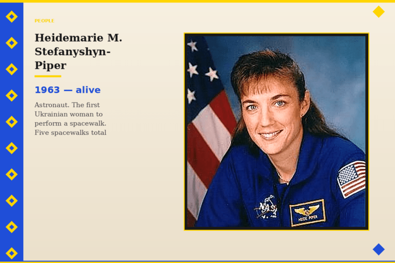 Heidemarie Martha Stefanyshyn-Piper is an American astronaut of Ukrainian origin who accomplished what many men only dream of. She has completed two space missions during which she performed five spacewalks. Heidemarie became the third woman of Ukrainian heritage to travel into space. Before her, this achievement was reached by Judith Arlene Resnik from the USA and Roberta Lynn Bondar from Canada.