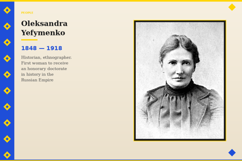 Education is a special topic for Ukrainian women. The drive for development and self-identification cannot be hidden, even if one tries very hard. Oleksandra Yefymenko could not hide it. One might say she was teaching Ukrainians the history of Ukraine long before we understood why it mattered.