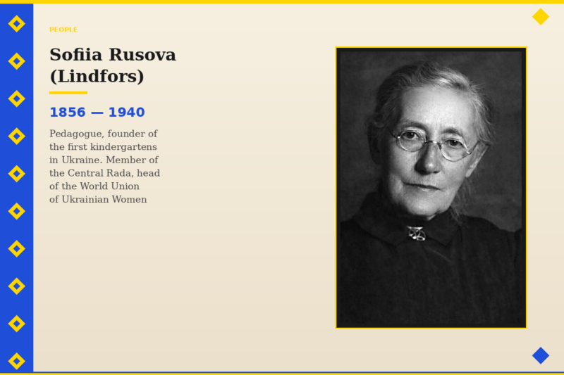 At the beginning of the last century, she developed the concept of national-oriented education. Rusova emphasized that a nation is formed in the cradle. In her view, only in one’s native land, surrounded by native nature and within the linguistic environment of one’s people, can a truly conscious individual and citizen be formed. National art is one of the primary factors shaping worldview and artistic sensibility in early childhood.